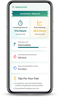 Use the autophagy calculator to see when fat burning begins, when cellular cleanup increases, and how fasting progresses over time. Results are based on fasting duration and measured inputs.